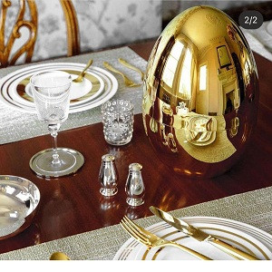 معالق ذهبية من 24 قطعة مع حافظة شكل بيضة ذهبية فيها بعض الخدوش